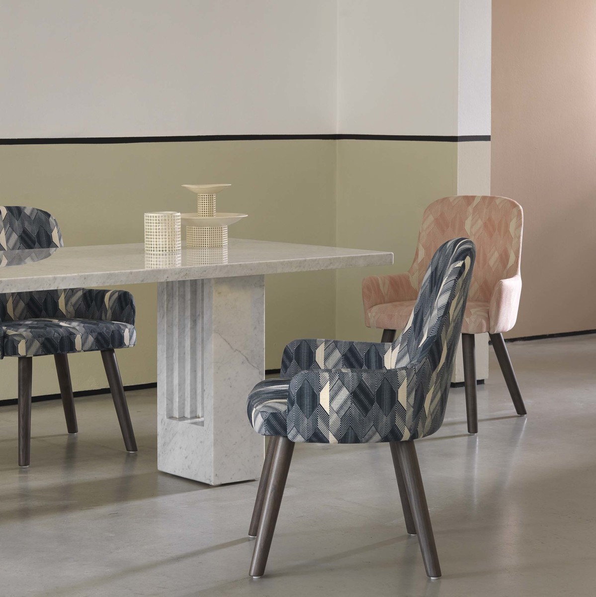 ‘Perception’ is a collection of three prints, Diez, Gego and Riley all showcasing the designer’s vision and skill. The result is a hugely exciting collection of dynamic yet refined designs whose bold and directional colourways will inform and complement interior schemes, imbuing a joyful accord of discerning refinement and abstract play.